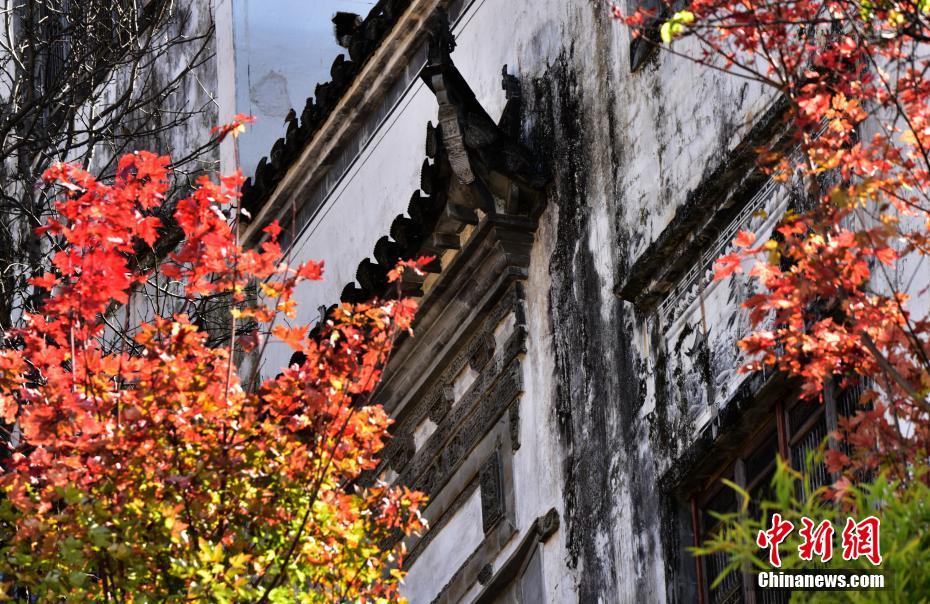 白墙黛瓦映红叶 江西婺源篁岭古村秋色动人