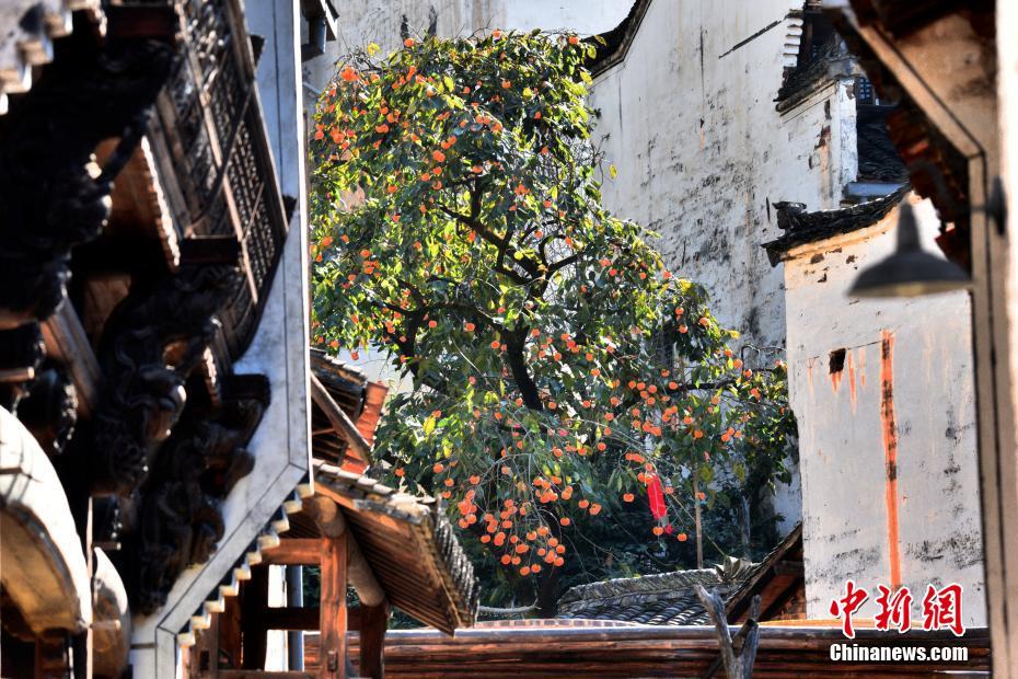白墙黛瓦映红叶 江西婺源篁岭古村秋色动人