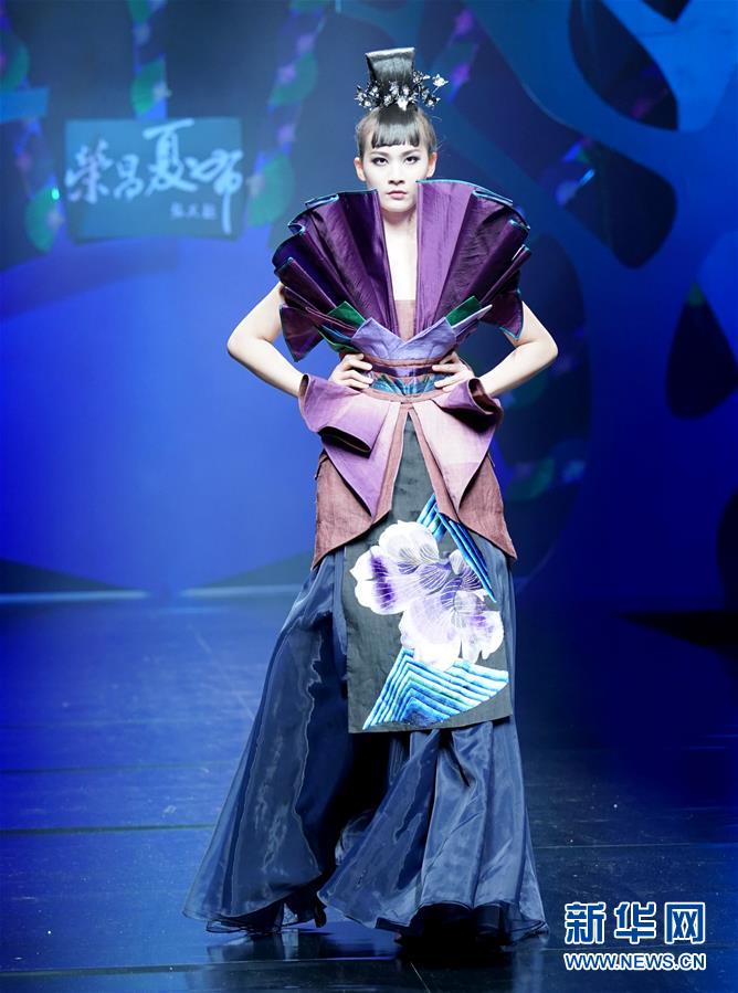 10月31日,模特在北京举行的中国国际时装周“荣昌夏布·张义超创意作品发布会”上展示著名时装设计师张义超的时装作品。 新华社记者 陈建力 摄