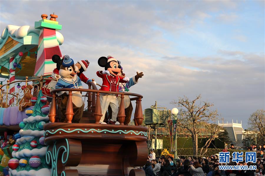 11月7日,在日本东京迪士尼乐园,装扮成迪士尼卡通人物的演员在圣诞巡游上表演。新华社记者杜潇逸摄