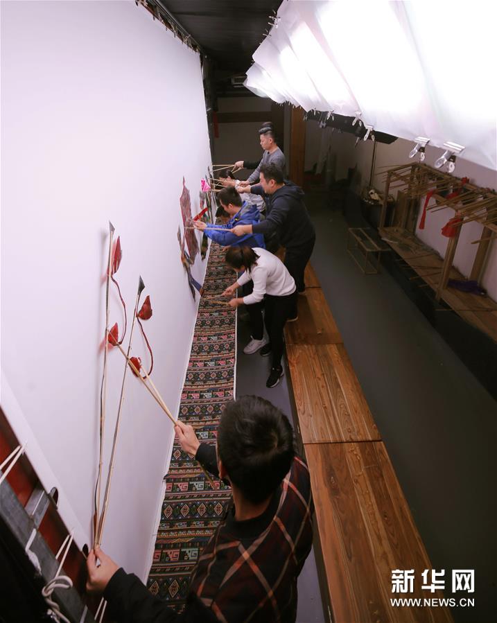 11月12日,在湖南张家界武陵源区溪布老街非遗体验基地,艺人在表演皮影戏《爬楼》。当日,以湘西地区民间婚俗为题材的皮影戏《爬楼》在湖南张家界市武陵源区溪布老街非遗体验基地上演。 新华社发(吴勇兵 摄)