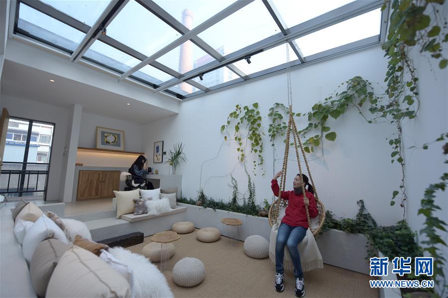 11月13日,游客在合肥“锅庐”文化创意空间的客房内休息。