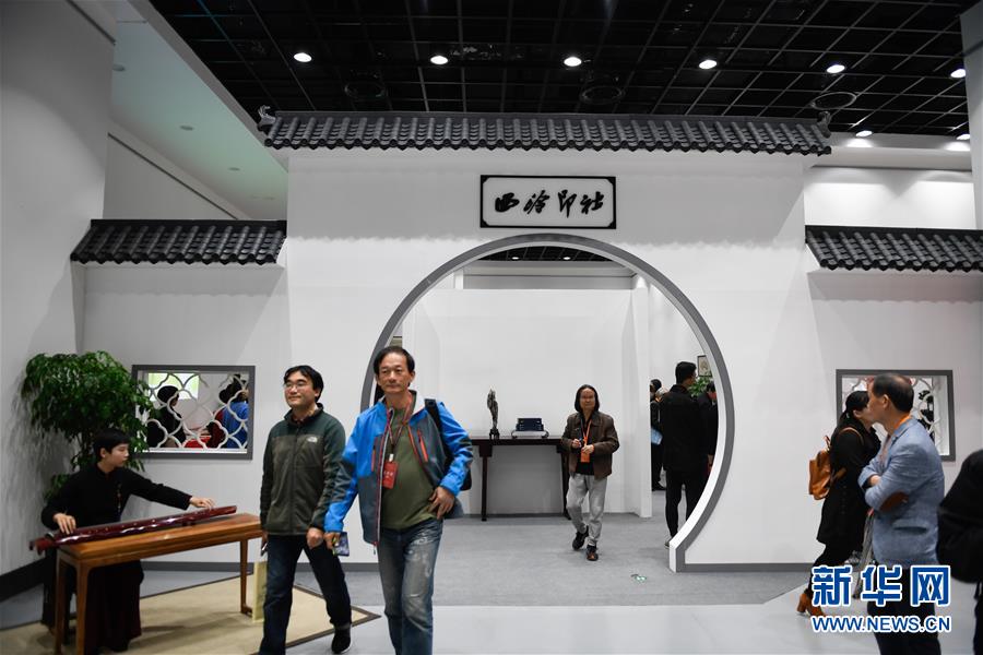 11月13日,观众在西泠印社115年社庆系列展览上观展。 当日,“百年西泠·与时为新”西泠印社115年社庆大型系列展览在浙江展览馆举行开幕式。 新华社记者 黄宗治 摄