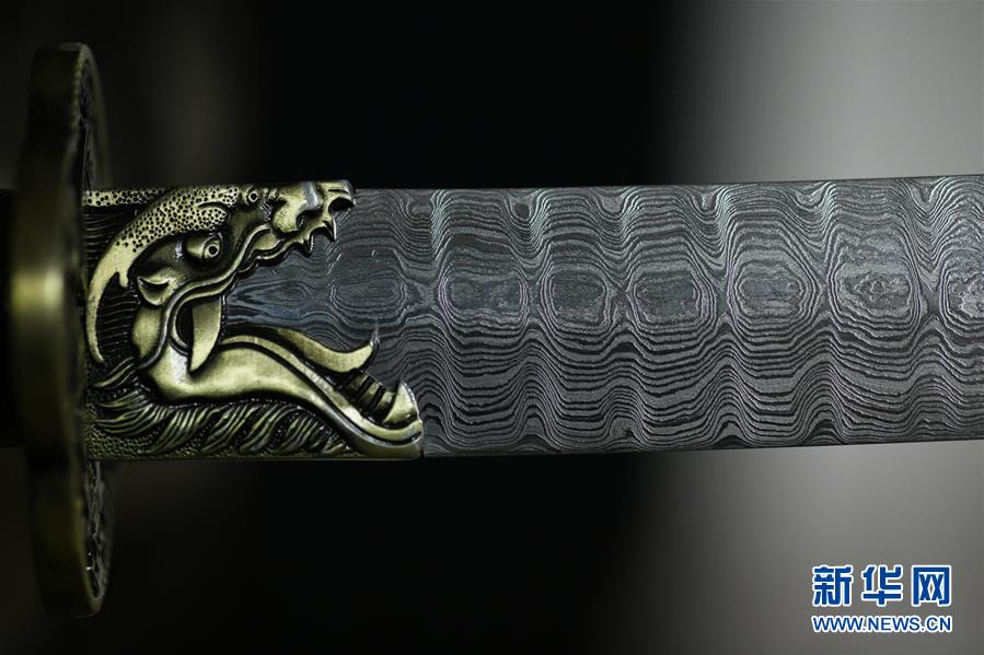 这是11月14日在石家庄市行唐县铁匠庄村拍摄的李住军锻造的工艺剑成品局部。 新华社发(陈其保 摄)