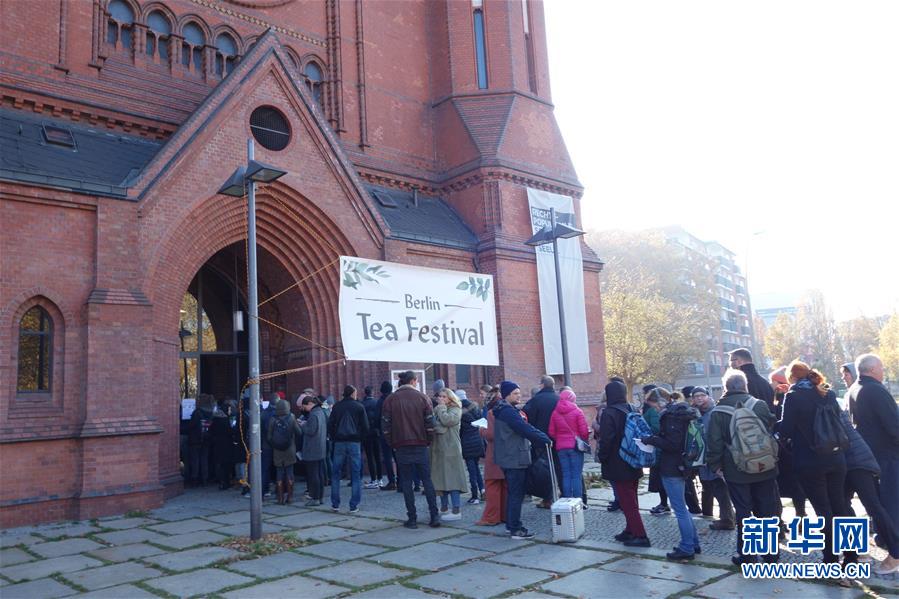 11月17日,在德国柏林,人们排队参加茶文化节。 新华社记者王勍摄