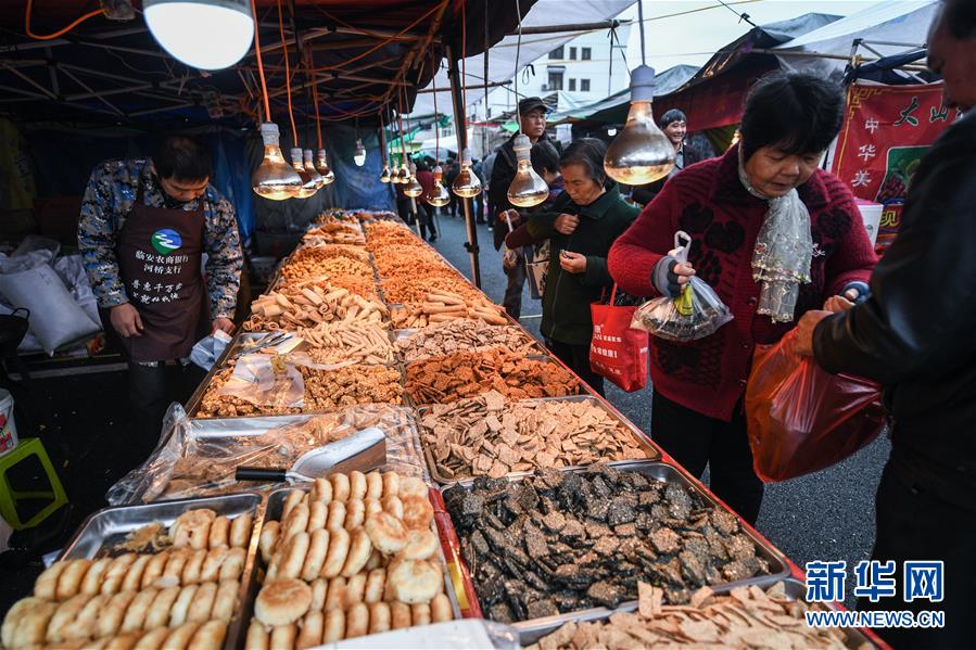 11月19日,人们在庙会现场购买当地美食。 新华社记者 徐昱 摄