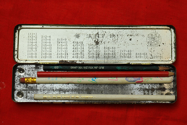 这是在山东曹县拍摄的上世纪八十年代学生用的文具盒和铅笔(11月1日摄)。