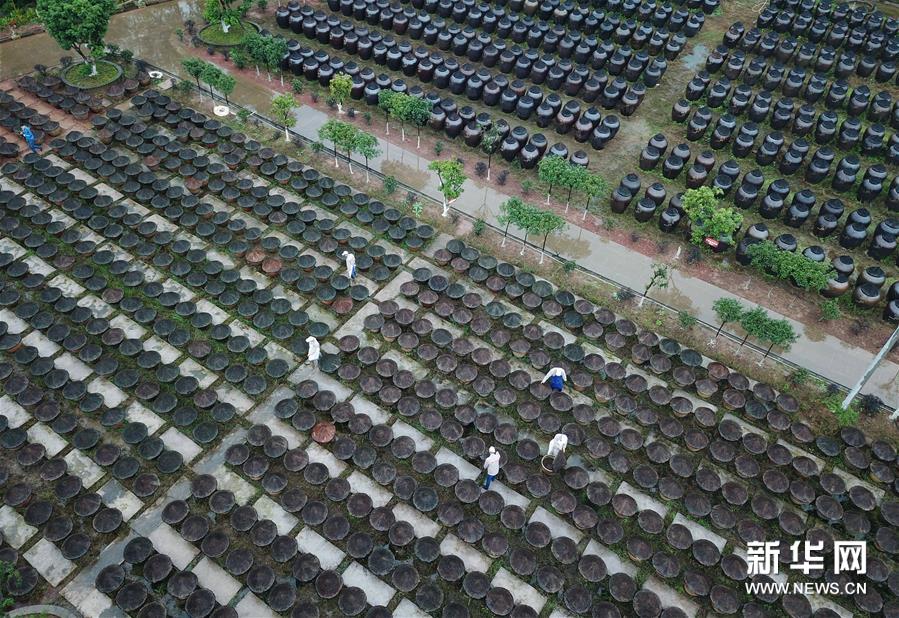 11月18日,在贵州省赤水市一家醋厂,工人在醋醅晾晒区工作(无人机拍摄)。 “赤水晒醋”历史悠久,这种古法酿醋技艺以当地优质大米、糯米、纯中药制作醋曲,经过蒸煮、酿晒、发酵等30余道工序制作而成,2009年被列入贵州省级非遗名录。 新华社发(王长育 摄)