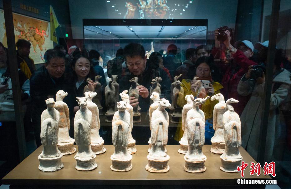 观众在位于西安市的陕西历史博物馆内参观唐代彩色十二生肖陶俑。中新社记者 侯宇 摄