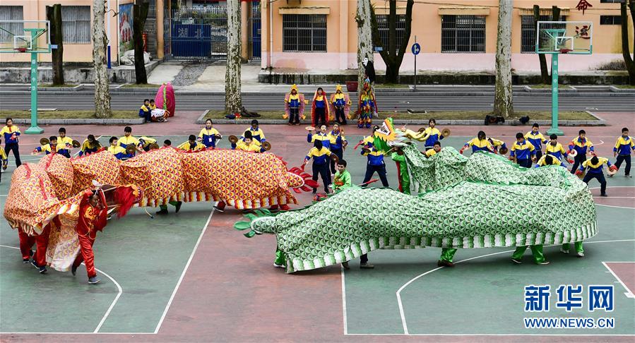 11月20日,湖北恩施来凤县旧司镇中心小学师生在练习“地龙灯”。 近年来,湖北省恩施土家族苗族自治州来凤县旧司镇中心小学将国家级非物质文化遗产“地龙灯”引入校园进行推广,引导孩子们学习传统文化,体验传统文化的魅力。 新华社发(唐俊 摄)