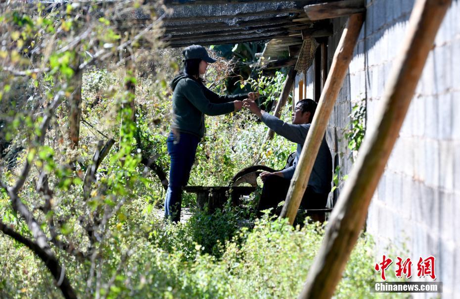 袁婧夫妻俩摘取自种的蔬菜准备午饭。中新社记者 任东 摄