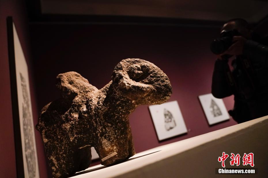 11月21日,“美在阿拉善—岩画与居延汉简艺术展”开幕式在北京中国美术馆举行,共展出岩画实物、雕塑、拓片、汉简等共计100多件。中新社记者 杜洋 摄