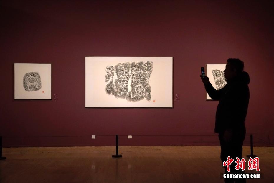 11月21日,“美在阿拉善—岩画与居延汉简艺术展”开幕式在北京中国美术馆举行,共展出岩画实物、雕塑、拓片、汉简等共计100多件。中新社记者 杜洋 摄