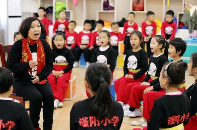 11月21日,河北省邢台市桥东区长信村民间艺人王国强(中)指导学生学习打鼓。 今年以来,河北省邢台市桥东区长信小学将当地民间音乐“长信排鼓”引入校园,开设校本课程,聘请民间艺人为学生授课,在丰富校园文化生活的同时,弘扬和传承中国传统文化。 “长信排鼓”是集体表演项目,表演器具以鼓、锣、钹为主。表演者身着古战服,按阵形排开,大鼓指挥,小锣引导。表演者随着鼓点变化,不断变换队形。2007年6月,“长信排鼓”被河北省列为省级非物质文化遗产。 新华社发(陈雷 摄)