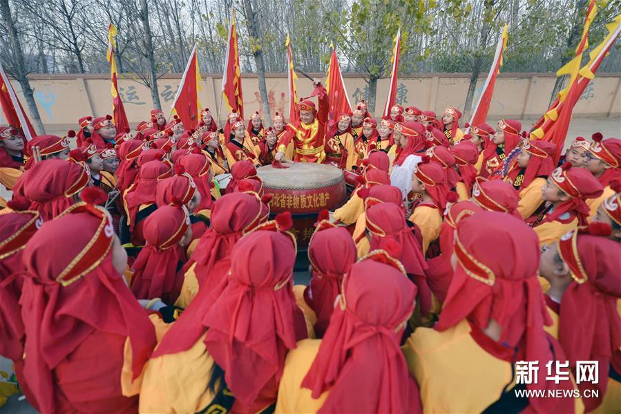 11月21日,河北省邢台市桥东区长信村民间艺人王国强(中)指导学生学习打鼓。 今年以来,河北省邢台市桥东区长信小学将当地民间音乐“长信排鼓”引入校园,开设校本课程,聘请民间艺人为学生授课,在丰富校园文化生活的同时,弘扬和传承中国传统文化。 “长信排鼓”是集体表演项目,表演器具以鼓、锣、钹为主。表演者身着古战服,按阵形排开,大鼓指挥,小锣引导。表演者随着鼓点变化,不断变换队形。2007年6月,“长信排鼓”被河北省列为省级非物质文化遗产。 新华社发(陈雷 摄)