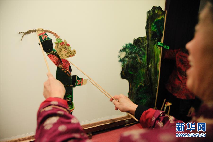 11月20日,在浙江海宁市南关厢历史街区,张坤荣在表演皮影戏。新华社记者 朱唯希 摄