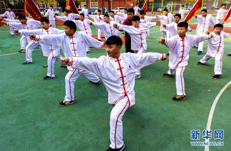 11月23日,衡水市冀州区职教中心学生在练习省级非物质文化遗产“三皇炮捶拳”。 近年来,为了弘扬传统文化、传承民间艺术,河北省衡水市冀州区在多所中小学实施“非遗文化进课堂”工程,走出一条特色素质教育之路。 新华社记者 李晓果 摄