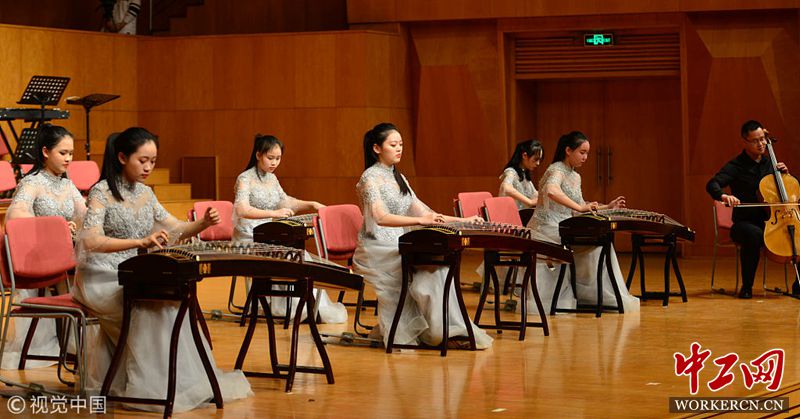 2018年11月26日晚,南京艺术学院附中学生中国器乐专场音乐会举行。图为同学们在认真表演中。来源:视觉中国 请勿转载