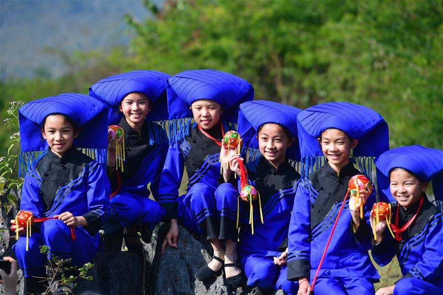 11月28日,靖西市安德镇中心小学山歌队队员在排练节目。 新华社记者 黄孝邦 摄
