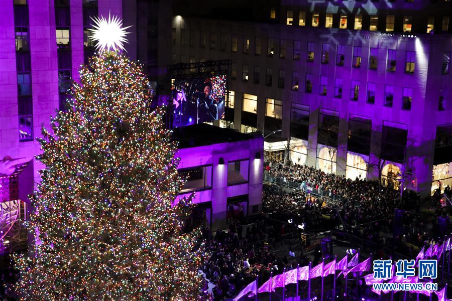 11月28日,人们观看美国纽约洛克菲勒中心点亮圣诞树仪式。 新华社记者王迎摄
