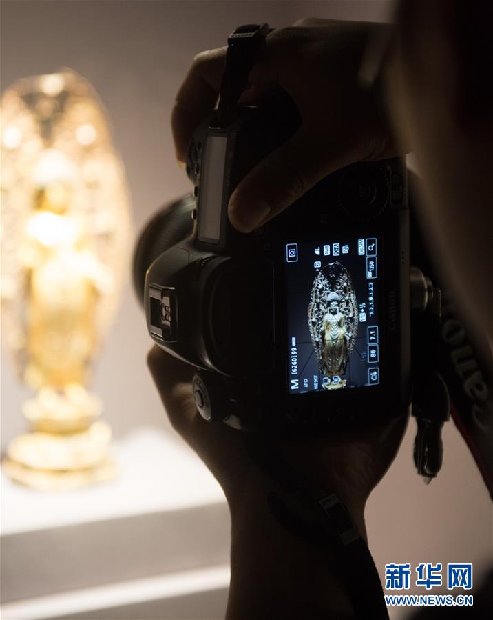 11月29日,观众拍摄一尊佛教金铜造像。 新华社记者翁忻旸摄
