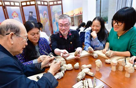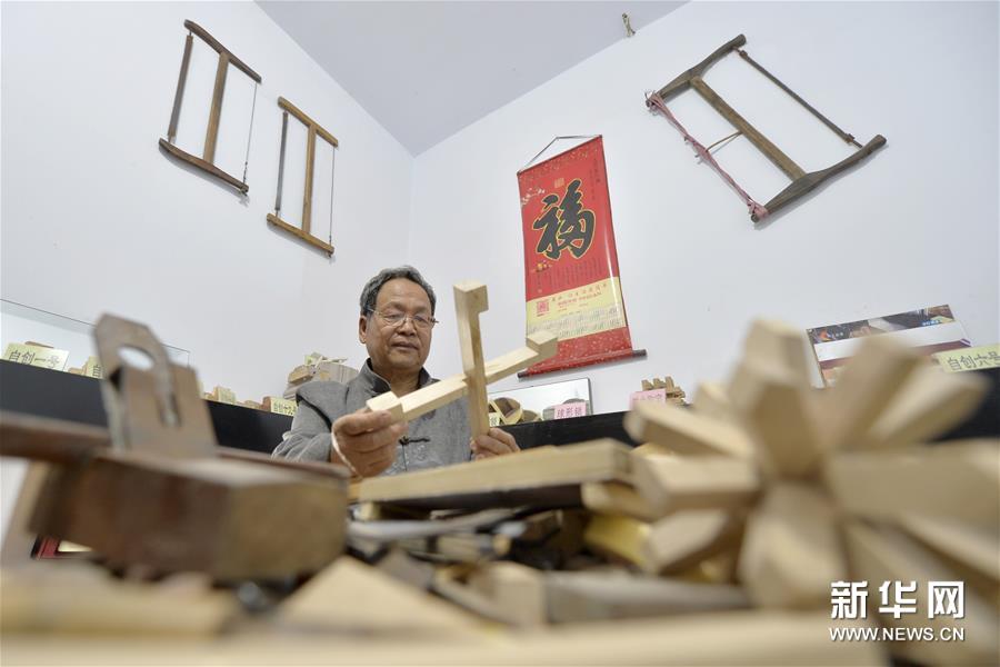 11月28日,侯全辰在设计孔明锁。侯全辰是河北省沙河市一位七旬退休老人。年少时,他向当地一位民间艺人学习孔明锁制作技艺,从此迷上了孔明锁制作。退休后,他投入大量的精力到孔明锁的研发制作上,并且把这一技艺向当地居民推广。目前,他已研发制作出球形锁、宝塔锁、多米锁等120多种孔明锁。新华社发(田晓丽 摄)