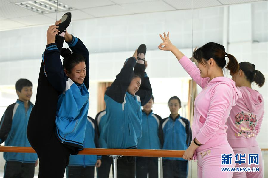 11月29日,在石家庄市特殊教育学校,特教舞蹈老师赵钰带领学生进行舞蹈训练。新华社发(梁子栋摄)