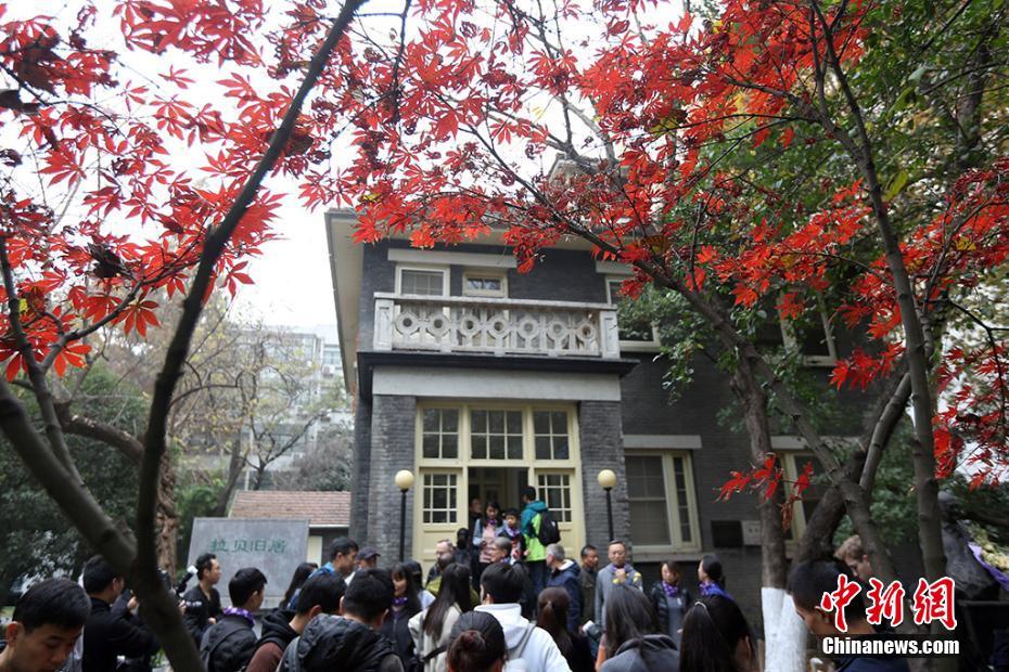 徒步队伍抵达拉贝故居。1937年12月侵华日军南京大屠杀期间,被称为“南京好人”的德国人拉贝在他的住宅和小花园的住所收留、保护了大批中国难民。 泱波 摄