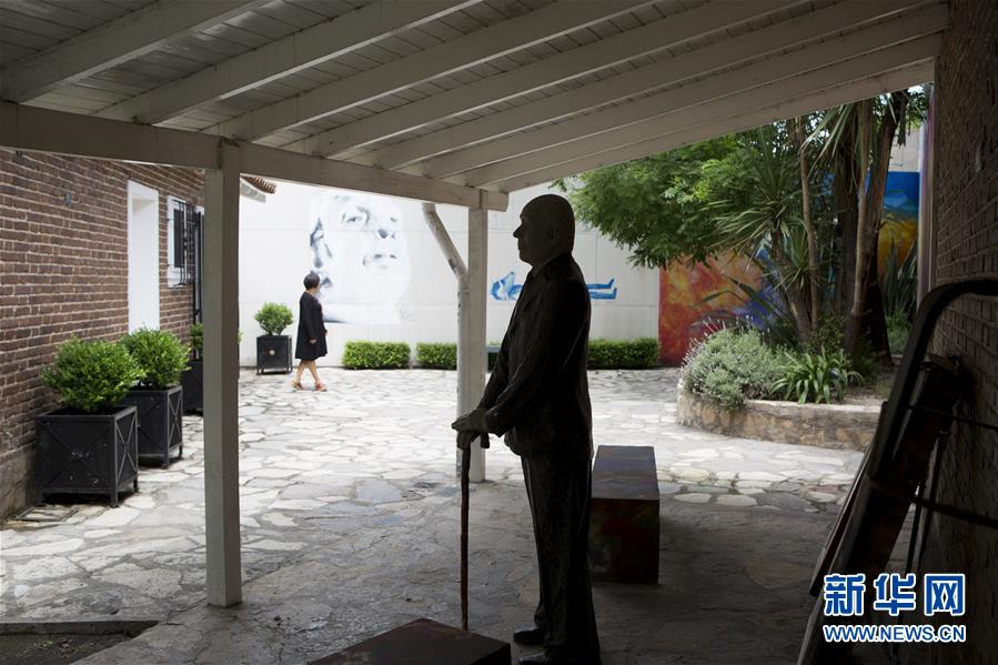 11月16日,在阿根廷阿德罗格,一名游客在博尔赫斯故居博物馆参观。 新华社发(马丁·萨巴拉 摄)