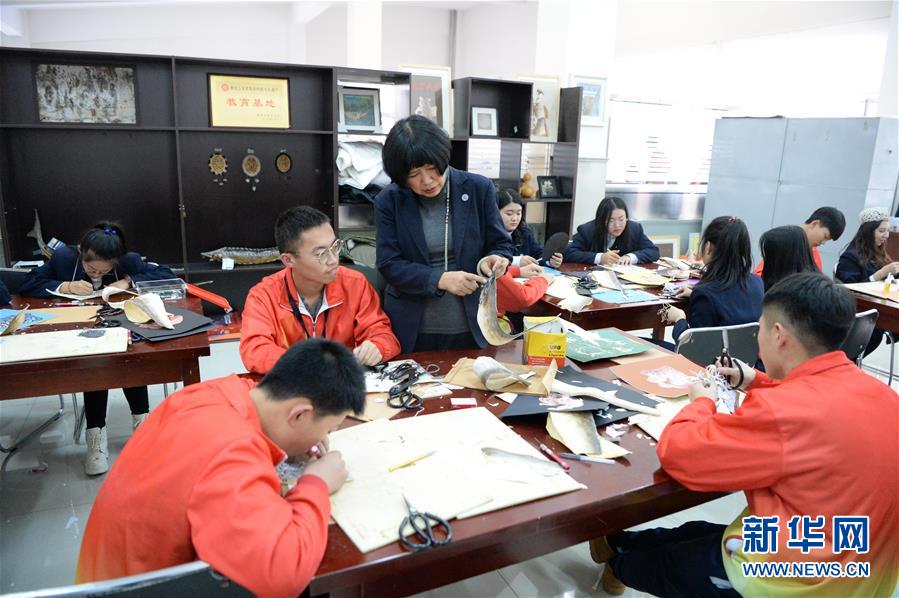 12月3日,张琳在哈尔滨轻工业学校讲授鱼皮画制作技艺。国家级非物质文化遗产赫哲族鱼皮制作技艺是我国赫哲族传统手工艺术。作为这项技艺的黑龙江省级传承人,十余年来,张琳一直从事鱼皮画的研究和创作,并通过做推广、开讲座、办活动,让更多年轻人了解并喜欢上这一传统手工艺,将这项濒临失传的艺术更好地传承下去。新华社记者 王凯 摄