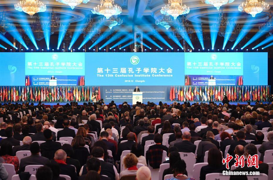 12月4日,第十三届孔子学院大会在成都开幕。来自150多个国家和地区的大学校长、孔子学院代表近1500人参加大会。图为大会开幕式现场。中新社记者 安源 摄