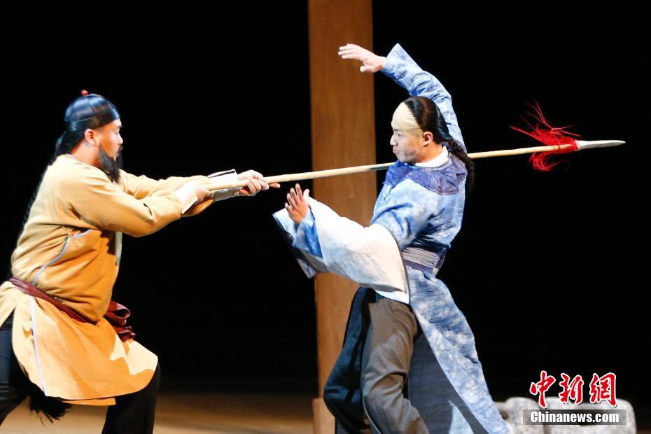 12月4日,以非遗项目孙式太极拳创始人孙禄堂为原型的原创话剧,北京人家之《武学宗师》在京首演。该剧由著名话剧导演顾威执导,展现了一代武学大师的传奇人生。中新社记者 富田 摄