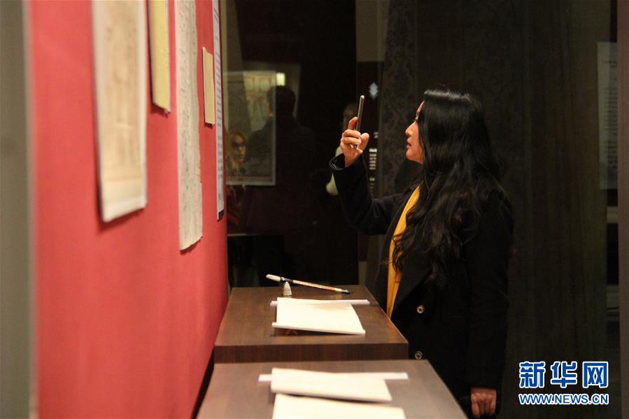 12月4日,在法国巴黎,观众在展览开幕式现场观看展出的档案文献。“锦瑟万里,虹贯东西——16世纪至20世纪初中外‘丝绸之路’历史档案文献展”4日晚在巴黎联合国教科文组织总部开幕,百余件组档案文献反映了丝路沿线国家在外交、贸易、文化、艺术等领域的交往历史。新华社记者 张曼 摄