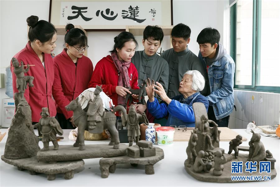 12月5日,在无锡商业职业技术学院的传统文化技艺协同创新中心,惠山泥人非物质文化遗产国家级传承人喻湘涟(前右)向学生传授惠山泥人制作技艺。 江苏省无锡商业职业技术学院以非遗特色文化为载体,搭建 “传、学、研、创”非遗文化进校园育人平台,探索建设非遗文化教育场地、打造非遗文化师资团队、成立非遗特色工作坊,举办非遗学徒班、非遗文化主题实践活动等,将中华优秀传统文化的传承创新与高职院校高素质人才培养相结合,走出一条传承与发展传统技艺的特色道路。 新华社记者 沈伯韩 摄