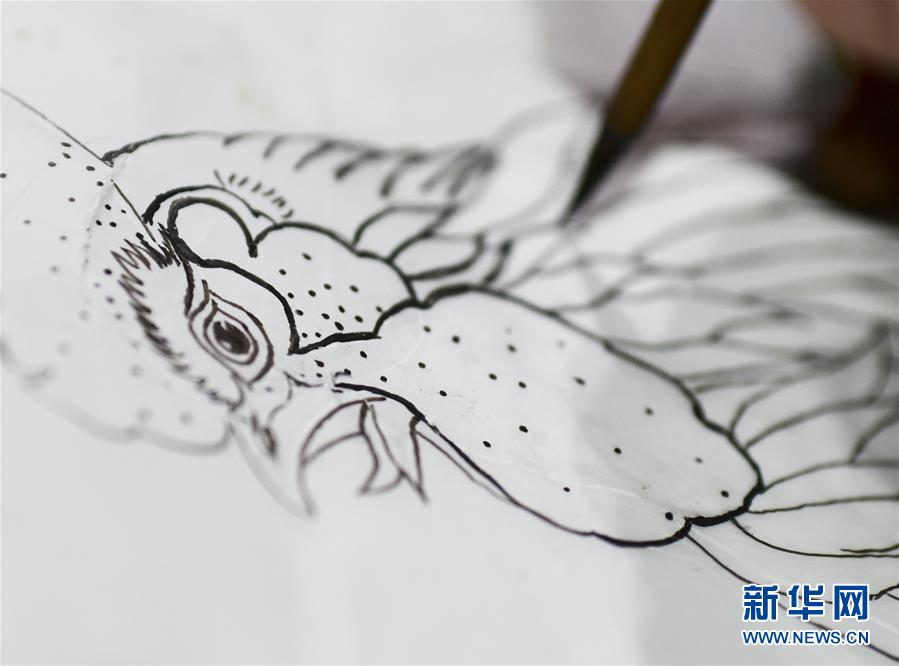12月8日,左惠平在工作室创作通草堆画。 新华社发(罗星汉 摄)