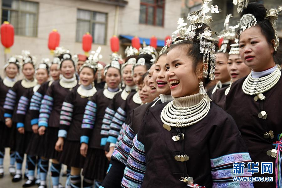 12月9日,在贵州省黎平县中潮镇佳所侗寨,侗族同胞盛装参加侗年活动。 新华社发(杨文斌 摄)