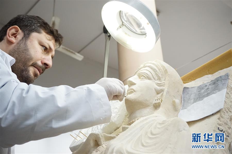 12月5日,在叙利亚首都大马士革,文物修复小组成员在国家博物馆内修复来自巴尔米拉的受损雕像。 在叙利亚国家博物馆展厅一角,文物修复师赫芭·朱马正给一座受损的雕像“整容”。“我对这座雕像有特殊的感情,‘她’就像我的家人一样。”朱马说,包括这座雕像在内,馆内大部分受损文物都来自她的家乡巴尔米拉。这座叙利亚古城有2000多年的历史,是一座古罗马风格的历史遗址,1980年被联合国教科文组织列入世界文化遗产名录。过去数年间,极端组织“伊斯兰国”先后两次攻占巴尔米拉,不仅滥杀无辜,还大肆破坏遗迹文物。2017年3月,叙利亚政府军重夺对巴尔米拉的控制权,劫后余生的文物被分批运到首都大马士革保存。数月前,国家博物馆组建文物修复小组,朱马也从巴尔米拉被调来参与修复工作。受人力、材料和技术所限,修复工程预计需要5至8年才能完成。朱马说,很多雕塑碎成多块,拼接十分耗时。尽管挑战重重,但朱马对修复过程丝毫不马虎。“赶紧好起来吧,等修好了,我带你们回家。”她总是如此喃喃而语。 新华社记者汪健摄