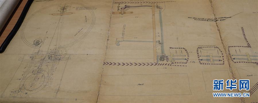 这是11月2日在英国纽卡斯尔的泰恩—威尔档案馆拍摄的致远舰设计图纸。 新华社记者日前在纽卡斯尔泰恩—威尔档案馆查找北洋海军史料时发现一套七张、档案名为“中国巡洋舰舵机设计图”的原始图纸。尘封百年,甲午海战中抗击日舰后沉没的清北洋海军致远舰部分原厂设计图纸在其建造地——英国纽卡斯尔市的一家档案馆首次被发现,为打捞那段悲壮的历史提供了重要参考。 新华社记者 韩岩 摄