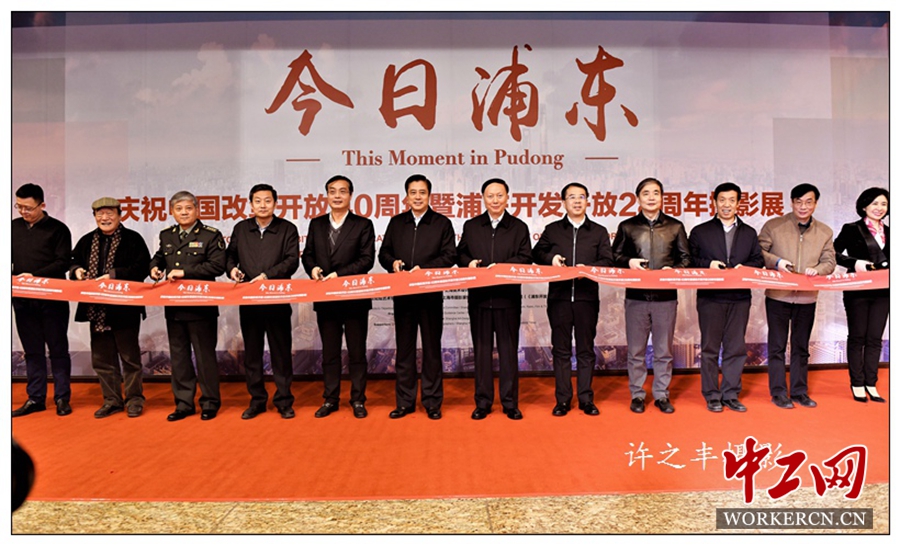 2018年12月10日,“今日浦东——庆祝中国改革开放40周年暨浦东开发开放28周年摄影艺术展”在北京世纪坛举行。中国多位摄影家用镜头中的精彩瞬间展现浦东开发开放的奋斗历程。图为摄影展开幕式。工人日报-中工网记者许之丰摄影报道