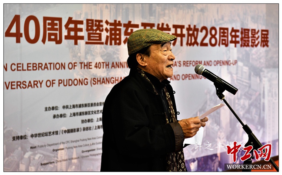 2018年12月10日,“今日浦东——庆祝中国改革开放40周年暨浦东开发开放28周年摄影艺术展”在北京世纪坛举行。中国多位摄影家用镜头中的精彩瞬间展现浦东开发开放的奋斗历程。图为摄影展开幕式。工人日报-中工网记者许之丰摄影报道