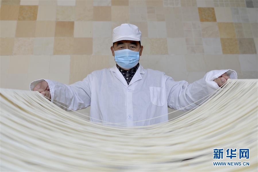 12月11日,在河北省临西县东尖冢村,省级非遗传承人王敬达在制作手工挂面。新华社发(陈雷 摄)