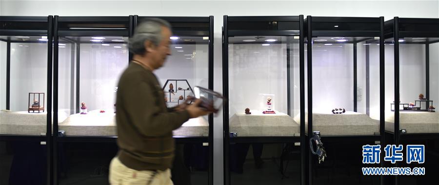 12月12日,韩志耀在工作室清点自己的核雕作品。新华社记者 姚剑锋 摄