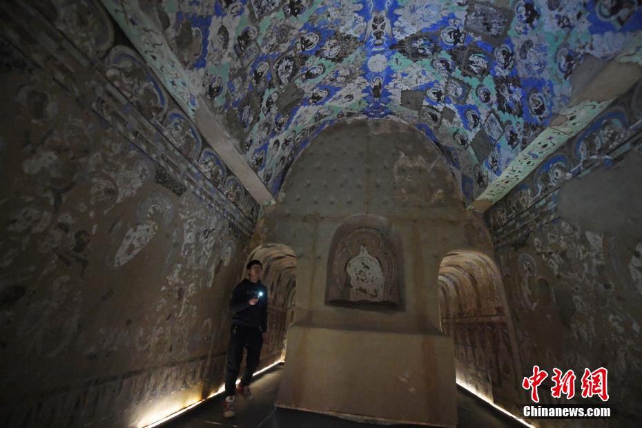 12月13日,“海外克孜尔石窟壁画及洞窟复原影像展”在兰州大学榆中校区美术馆展出。展览以图片形式展示了137幅流失海外克孜尔石窟壁画的真实面貌,同时展出的还有两个1:1复原仿真洞窟,以及利用现代数字技术制作的四个数字虚拟洞窟。图为按原比例复制的克孜尔石窟第38窟吸引参观者。中新社记者 杨艳敏 摄
