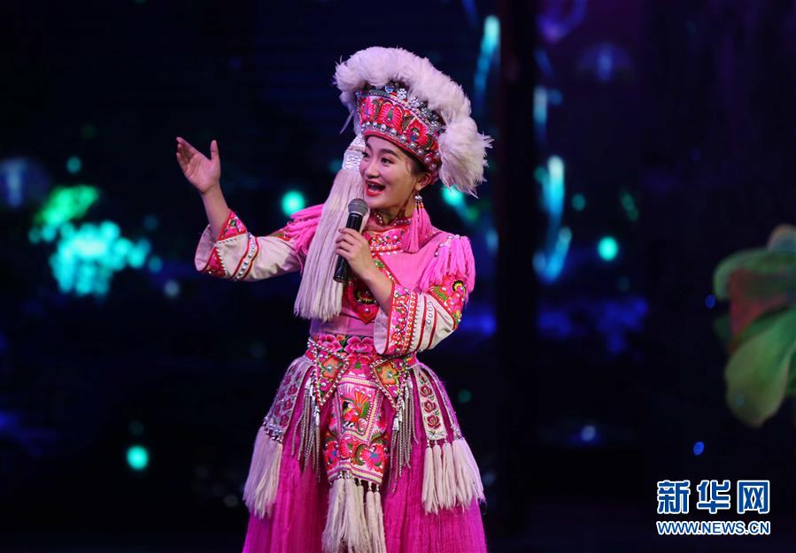 12月13日,湖南省张家界魅力湘西艺术团歌手段红霞在舞台上演唱桑植民歌《马桑树儿搭灯台》。 具有浓郁民族特色的湖南桑植民歌曲调丰富多变,旋律优美动听,在高唱低吟中显现出独特的艺术魅力,至今广为传唱。2006年,桑植民歌被列入第一批国家级非物质文化遗产名录。 近年来,张家界艺术团体根据桑植民歌的曲调、创作来历和大意,编排了舞蹈、杂技等多项演出形式,与民歌一起融合表演,让非遗民歌绽放新光彩。 新华社发(吴勇兵 摄)