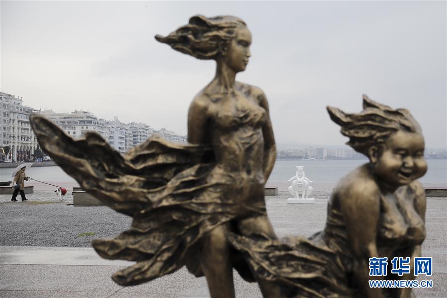 这是12月18日在希腊塞萨洛尼基市拍摄的“肥女”系列雕塑。 新华社发(迪米特斯·托斯迪斯摄)