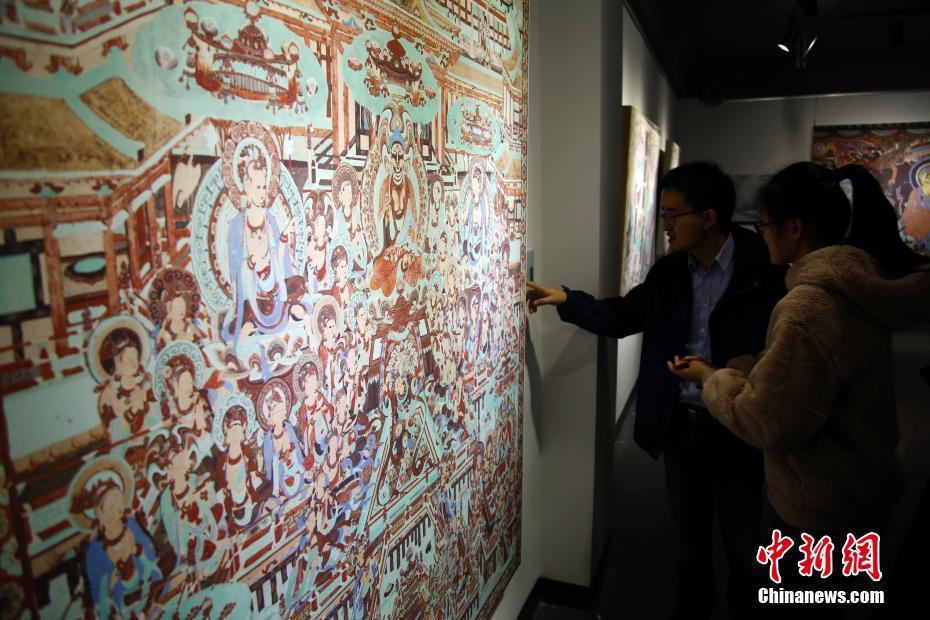 精美的敦煌壁画吸引参观者。汤彦俊 摄