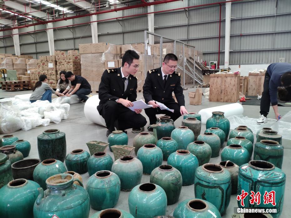 深圳海关12月21日通报称,该关日前向广东省文物局移交罚没文物492件。其中陶瓷器230件、竹木器219件、古钱币38枚、铜器3件、其他金属器1件、邮品1件。经鉴定,此批文物为汉代至民国时期文物,具有较高的历史、艺术和科学价值。图为深圳海关关员在清点移交文物。 中新社记者 钟宇威 (通讯员) 摄