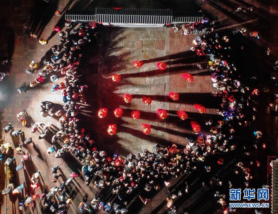 12月22日,浙江省宁波市镇海区澥浦镇群众在欣赏民俗表演(无人机拍摄)。 当日是二十四节气中的冬至,各地举办丰富多彩的民俗活动。 新华社发(张辉 摄)