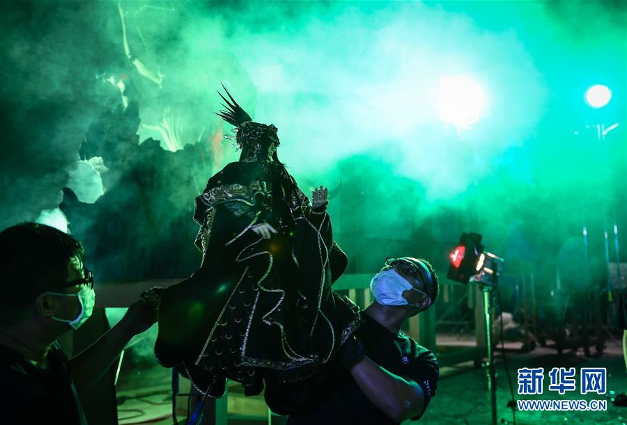 12月21日,工作人员在台湾云林的影棚拍摄霹雳布袋戏影视作品。 新华社记者 李响 摄