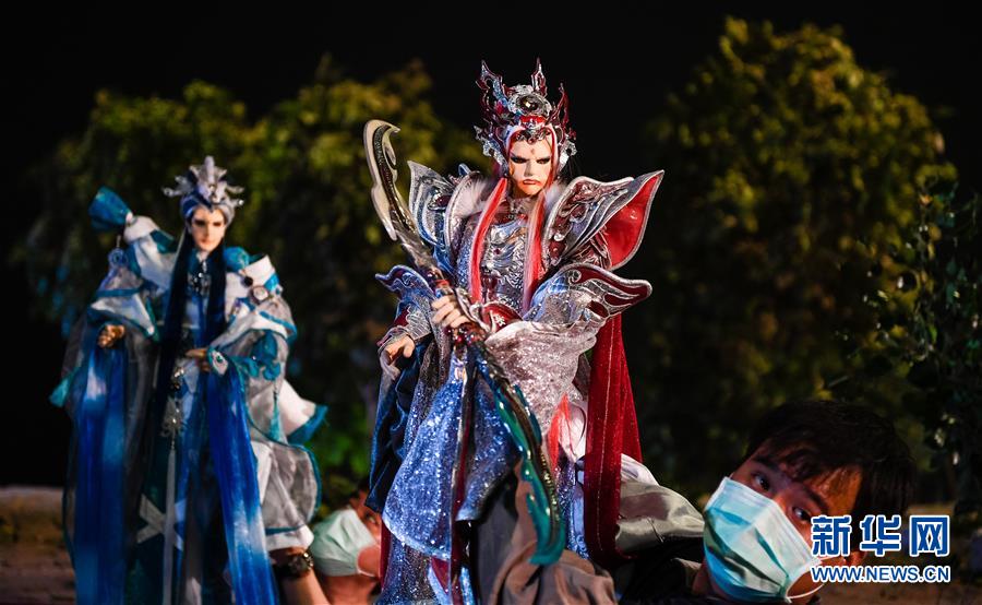 12月21日,工作人员在台湾云林的影棚拍摄霹雳布袋戏影视作品。新华社记者 李响 摄